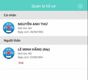 Bước 2: Người dùng chọn hồ sơ muốn đăng ký khám bệnh