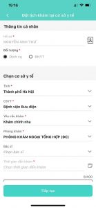 Bước 3: Người dùng nhập thông tin đăng ký khám