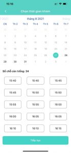 Bước 4: Người dùng chọn thời gian khám bệnh