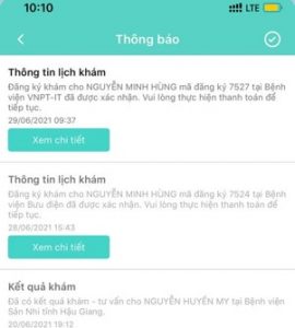Bước 7: Khi CSYT xác nhận lịch hẹn, bệnh nhân sẽ nhận được thông báo CSYT đã xác nhận lịch hẹn của bạn