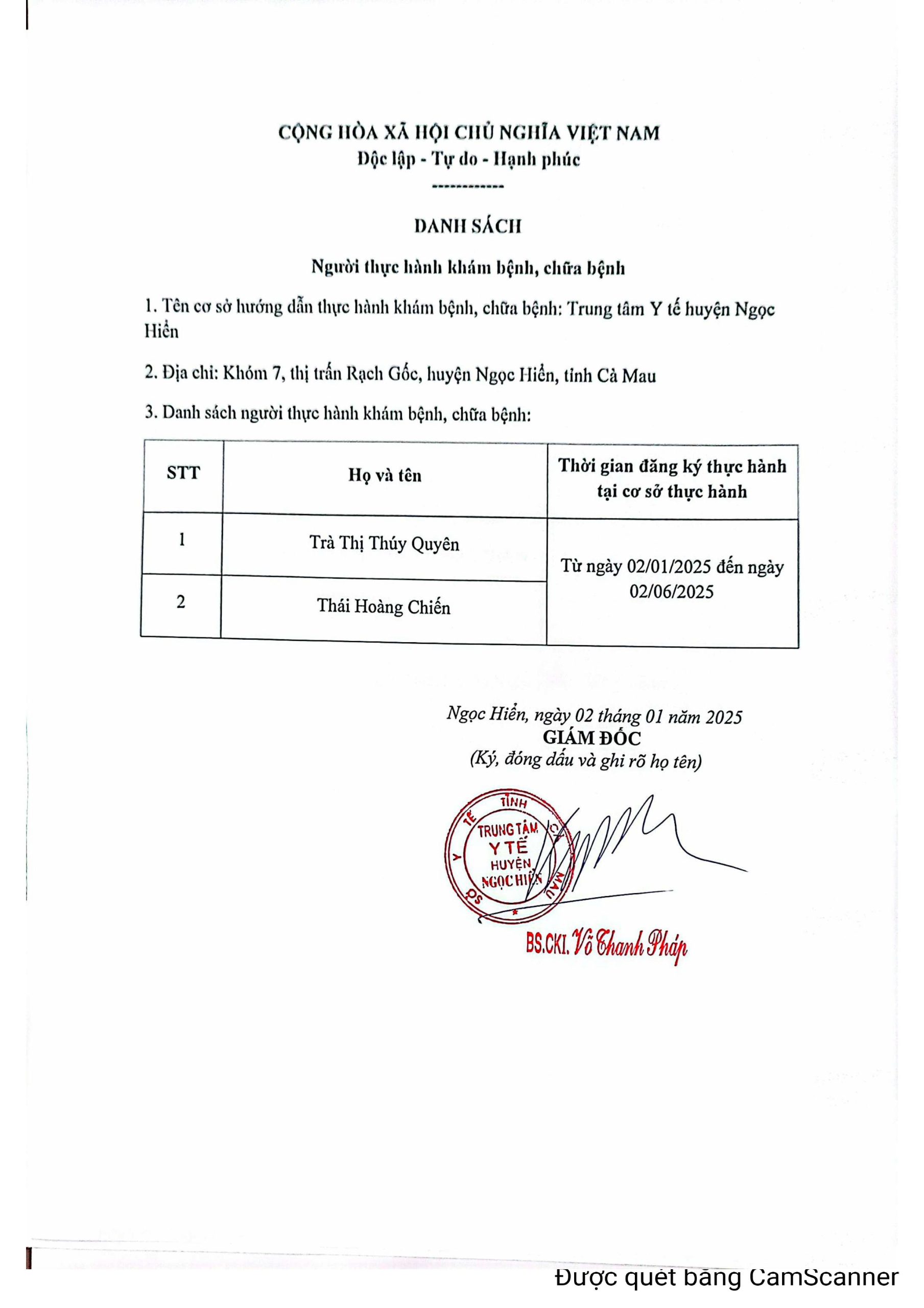 TTYT huyện Ngọc Hiển hướng dẫn thực hành Cấp chứng chỉ hành nghề cho Bác sĩ